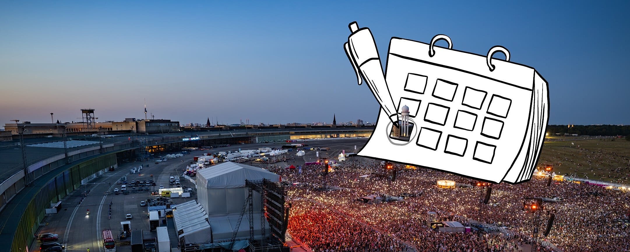 Ob historische Gebäudeführung, spektakuläres Großevent, erinnerungskulturelle Veranstaltungen, ein Besuch des THF TOWER mit seiner beeindruckenden Dachterrasse und einem grandiosen Blick über Berlin, wechselnden Ausstellungen, Theater im Hangar, Sport auf dem Vorfeld, Wintermarkt in der Alten Fahrzeughalle oder Kunst in der Haupthalle – der Flughafen Tempelhof ist ein lebendiger Ort, an dem jeden Tag im Jahr etwas los ist. Highlights in 2024 waren unter anderem die Feierlichkeiten anlässlich des 75. Jubiläums der Luftbrücke im Mai, die Konzerte der ärzte nach dem Cradle-to-Cradle-Prinzip im August und die Enthüllung des Erinnerungszeichens „nicht mehr zu sehen“ im September.